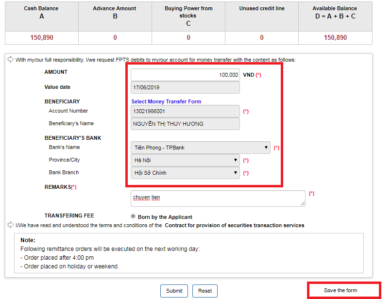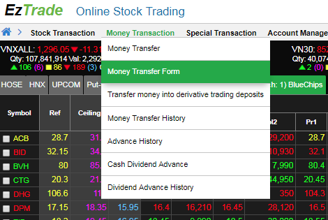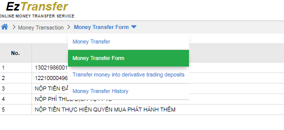 - From EzTrade, click on Money Transaction menu, then Money Transfer Form item.