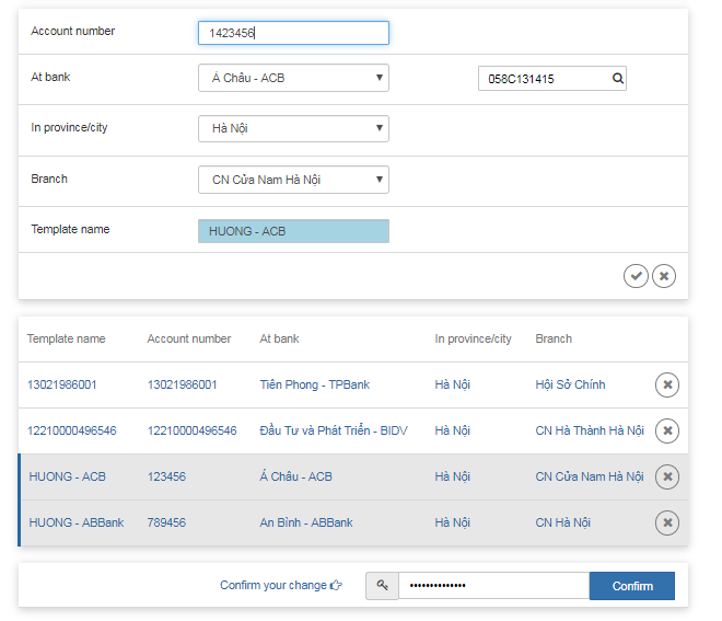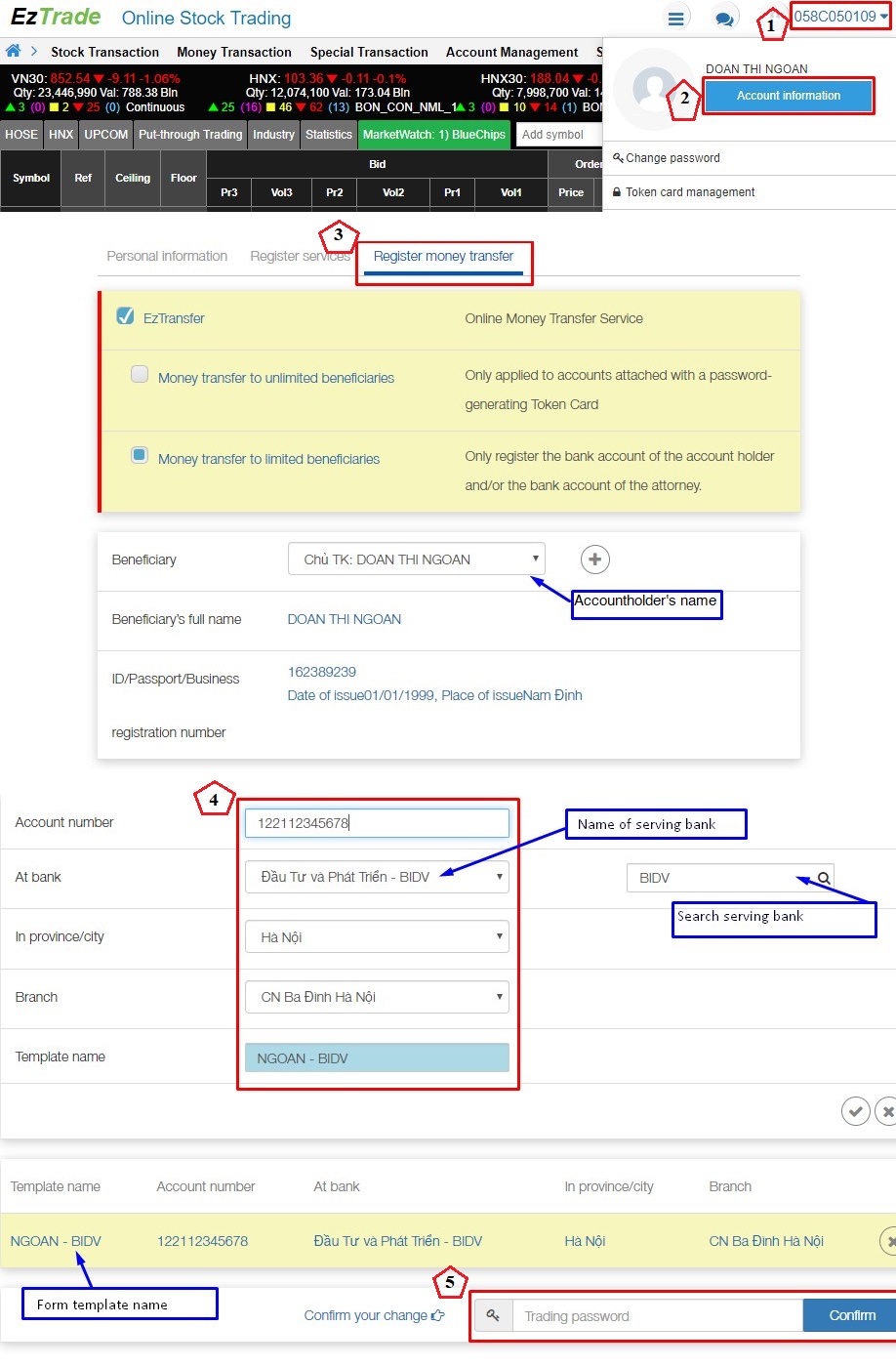 You need to provide all required information, enter your trading password and click on “Confirm” button to complete.